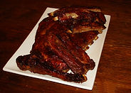 Vermont Ribs: Oven baked baby back pork ribs hard rubbed with a combination of spices and seasonings then basted with a home made barbeque sauce of wine, garlic, Tobacco and a light maple syrup rendering an unforgettable taste.